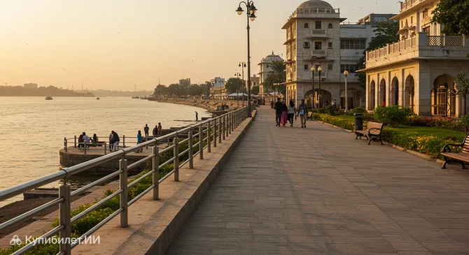 Набережная реки Тапти – это очаровательная и оживленная прибрежная зона, протянувшаяся вдоль берегов одноименной реки в городе Сурат, Индия. Река Тапти, также известная как Тапи, является одной из важнейших водных артерий центральной Индии. Набережная заслуженно стала популярным местом для неспешных прогулок, отдыха и наслаждения живописными видами как среди местных жителей, так и среди туристов, посещающих Сурат.