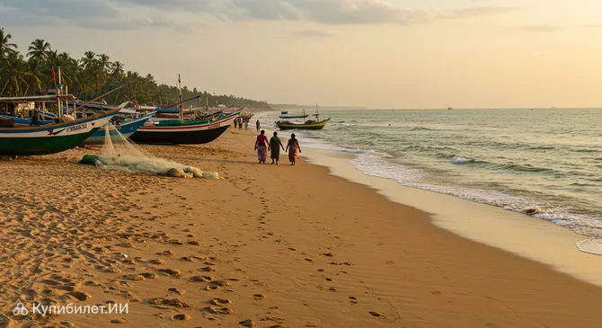 Сам пляж очаровывает посетителей своим золотистым песком и кристально чистой водой. Особенно прекрасны здесь закаты, окрашивающие небо и море в невероятные цвета. Это место привлекает как местных жителей, так и путешественников, желающих насладиться красотой природы вдали от туристической суеты и почувствовать истинный дух Кералы.