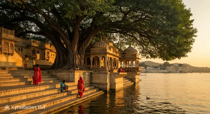 Главная причина, по которой Амбраи-Гхат так любим туристами и фотографами, — это захватывающий вид на два самых известных дворца Удайпура. Отсюда открывается каноническая панорама на величественный Городской дворец, возвышающийся на берегу, и сказочный Озёрный дворец (Джаг-Нивас), который, кажется, плывет посреди озера. Особенно волшебная атмосфера царит здесь на закате, когда последние лучи солнца окрашивают воду и архитектурные шедевры в тёплые золотистые тона.