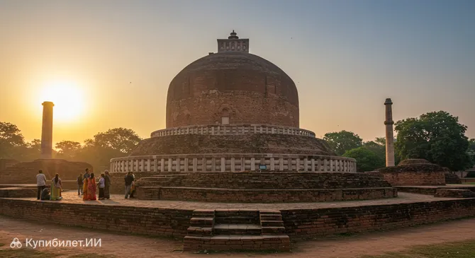 Всего в 10-12 километрах к северо-востоку от шумного центра Варанаси находится Сарнатх – одно из четырех главных святых мест буддизма. Именно здесь, согласно преданию, Будда Гаутама произнес свою первую проповедь после достижения просветления, тем самым «повернув колесо Дхармы». Сегодня Сарнатх представляет собой обширный археологический комплекс и важное место паломничества для буддистов со всего мира. Ключевыми достопримечательностями здесь являются монументальная Ступа Дхамек, отмечающая точное место первой проповеди, руины древних монастырей и храмов, знаменитая Колонна Ашоки с ее львиной капителью (ныне национальный герб Индии, оригинал в музее) и тихий Олений парк (Сарнатх), где, по легенде, и произошло это знаковое событие. В Сарнатхе также расположен превосходный археологический музей с богатой коллекцией буддийских скульптур и артефактов. Это место предлагает спокойную и созерцательную атмосферу, резко контрастирующую с кипучей энергией Варанаси.