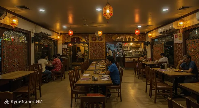 Для тех, кто предпочитает проверенные временем вкусы в современной подаче, в городе работает Аль-Бураак. Этот ресторан славится своим гостеприимством и разнообразием блюд. А если вы соскучились по привычному фастфуду, к вашим услугам всегда открыт местный Макдоналдс, где интернациональное меню дополнено локальными индийскими позициями. Аль-Бураак. Иллюстрация.