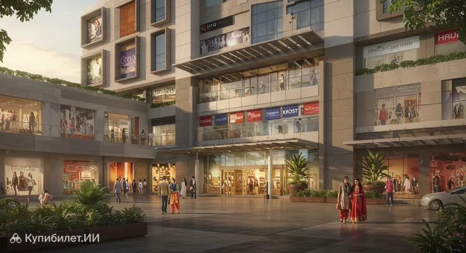 Шопинг в Васаи — это увлекательное сочетание традиционных индийских базаров и современных торговых центров. Если вы ищете брендовую одежду, электронику или хотите провести время в комфортной обстановке, отправляйтесь в Тhe Capital Mall. Это крупнейший молл в регионе, где представлены популярные международные и индийские марки. Тhe Capital Mall. Иллюстрация.
