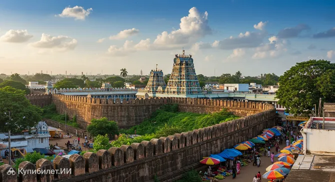 • Знаменитый форт Веллуру, построенный в XVI веке и считающийся образцом военной архитектуры Южной Индии, примечателен не только своими мощными укреплениями. Внутри его стен гармонично соседствуют древние храмы и действующая мечеть, что подчеркивает многогранную историю и культурное наследие города.