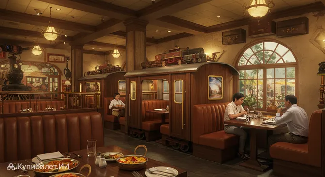 Интерьер заведения продуман до мелочей: здесь можно почувствовать себя пассажиром старинного вагона или посетителем оживлённой станции. Декор создаёт особую атмосферу, которая переносит гостей в эпоху паровозов и дальних странствий, делая каждый обед или ужин запоминающимся событием. Это идеальное место как для семейного отдыха, так и для встречи с друзьями в необычной обстановке.