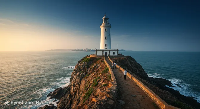 Маяк Дельфинья Голова (Dolphin’s Nose Lighthouse) – это не просто навигационное сооружение, а один из самых узнаваемых символов и значимых ориентиров города Вишакхапатнам, расположенного на живописном восточном побережье Индии. Маяк величественно возвышается на одноимённом мысе, чьи очертания действительно напоминают голову дельфина, давшую ему такое необычное название. Находясь на высоте около 174 метров над уровнем моря, он служит заметным ориентиром как для кораблей в море, так и для наблюдателей с суши.