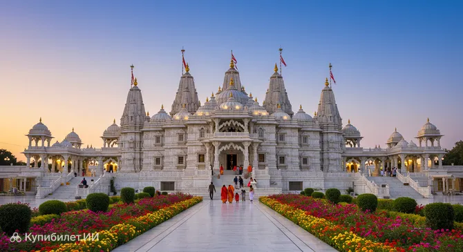 Прем Мандир, что в переводе означает «Храм Любви», — это величественный индуистский храмовый комплекс, расположенный в священном городе Вриндаван, в Индии. Этот храм, открытый для публики в 2012 году, является одним из самых известных и впечатляющих в регионе и посвящен воспеванию божественной любви между Радхой и Кришной, а также Ситой и Рамой. Его название полностью отражает главную идею — прославление любви как высшей духовной ценности.