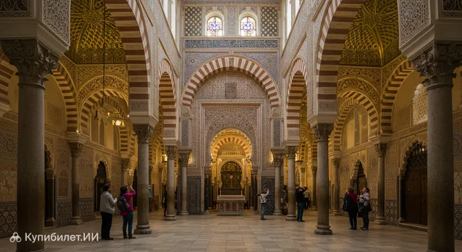 Здание было построено в 1180 году и представляет собой великолепный образец стиля мудехар. Его интерьер поражает воображение: бесконечные ряды белоснежных подковообразных арок, опирающихся на стройные восьмигранные колонны, создают ощущение света и простора, напоминающее о лесе из пальм. Внутреннее убранство, хоть и лишено пышного декора, впечатляет своей гармонией и изяществом линий, сочетая в себе элементы различных культур.