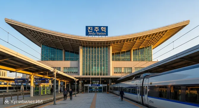 Железнодорожный вокзал Джинджу (Jinju Station) — это современные транспортные ворота в город, сочетающие в себе передовые технологии и эстетику традиционной корейской архитектуры. Здание вокзала, перенесенное на новое место в 2012 году, обслуживает высокоскоростные поезда KTX, а также линии ITX-Saemaeul и Mugunghwa, соединяя регион с Сеулом и Пусаном. Просторный и светлый терминал спроектирован так, чтобы напоминать ханок — традиционный корейский дом, что создает особую атмосферу сразу по прибытии.