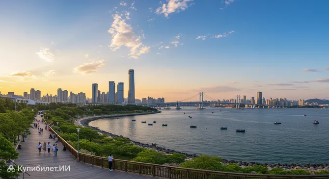 Одним из символов современного Инчхона является Сонгдо Сентрал Парк. Этот великолепный парк, раскинувшийся в футуристическом районе Сонгдо, создан по образу Центрального парка Нью-Йорка, но с уникальной особенностью – его живописные водные каналы наполнены очищенной морской водой. Здесь можно насладиться водными прогулками, покататься на велосипеде, устроить пикник или просто полюбоваться впечатляющими небоскребами вокруг. Это идеальное место, чтобы ощутить дух "умного города" и отдохнуть от суеты.