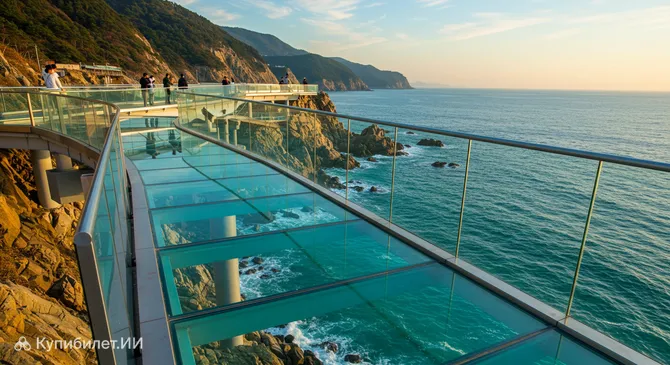 Прогулка по смотровой площадке Чхонгсапо Даритдоль – это уникальная возможность насладиться свежим морским бризом и сделать потрясающие панорамные фотографии. Особенно впечатляющи виды на рассвете или закате, когда солнце окрашивает небо и воду в невероятные цвета. Некоторые участки площадки могут иметь стеклянный пол, добавляя острых ощущений и позволяя посетителям буквально "парить" над волнами, наблюдая за морской жизнью внизу.