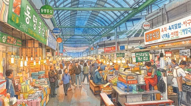 Рынок Кванджан — это не просто торговая площадь, а настоящий культурный и гастрономический эпицентр Сеула. Основанный в 1905 году, он по праву считается старейшим постоянно действующим традиционным рынком в Южной Корее. Расположенный в самом сердце исторического района Чонно, он ежедневно притягивает тысячи людей своей неповторимой атмосферой живого восточного базара.