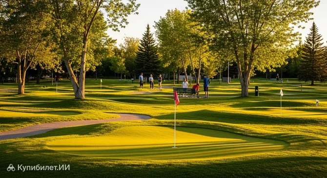 Заведение пользуется славой отличного места для семейного отдыха. Оно гармонично вписывается в городской ландшафт, предлагая гостям качественные газоны и продуманные маршруты для игры, что превращает обычную прогулку в увлекательное спортивное приключение.