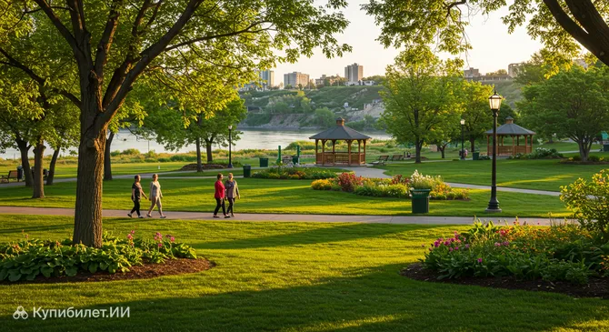 Парк предлагает посетителям массу возможностей для качественного досуга: от девяти просторных пикниковых площадок для больших компаний до теннисных кортов и бейсбольных полей. Одной из главных особенностей этого места является его *инклюзивность* — удобная гранулированная тропа вдоль реки доступна для прогулок с колясками, позволяя каждому насладиться умиротворяющими видами на речную долину.