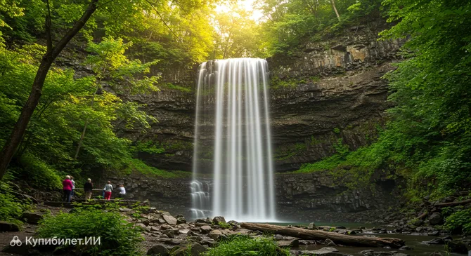 Среди многочисленных природных сокровищ, которыми гордится Канада, особое место занимает классический водопад «занавесного» типа — Вебстер-Фолс. Расположенный в живописном районе Дандас города Гамильтон, он по праву считается одним из самых величественных и узнаваемых водопадов региона. Его воды ровным широким полотном падают с высоты 22 метров, создавая эффектную природную декорацию.
