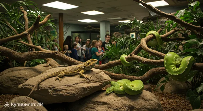 Экспозиция центра посвящена демонстрации экзотических животных и включает в себя впечатляющее разнообразие видов: от грациозных змей и причудливых ящериц до невозмутимых черепах. Каждое животное обитает в вольерах, имитирующих естественную среду, что позволяет гостям наблюдать за их поведением в условиях, близких к природным.