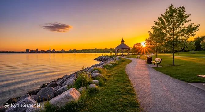 Представьте себе бескрайнюю водную гладь и зеленые просторы — Парк Лейк-Онтарио является крупнейшей рекреационной зоной, которую предлагает своим гостям Кингстон. Раскинувшийся на площади более 300 акров, этот парк служит идеальным примером того, как современная инфраструктура может гармонично соседствовать с нетронутой природой на берегу одного из Великих озер.