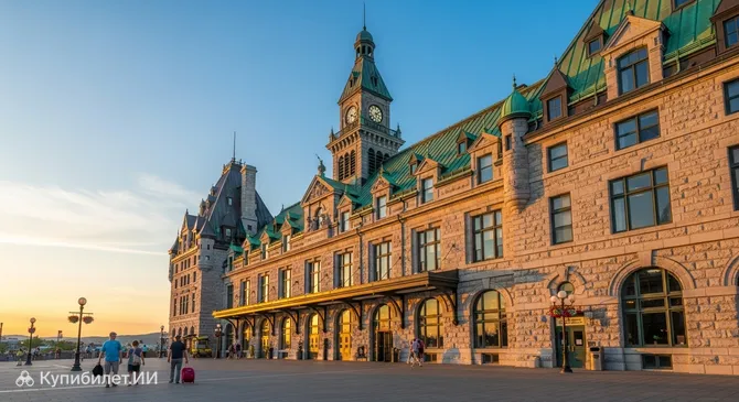 Железнодорожный вокзал Пале (Gare du Palais) — это не просто транспортный узел, а настоящая архитектурная достопримечательность Квебек-Сити. Здание, построенное в величественном стиле шато, напоминает сказочный замок с крутыми крышами и башенками, гармонично дополняя исторический облик города.