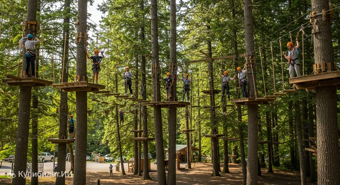 Особенностью парка является его универсальность. Он спроектирован так, чтобы быть интересным как новичкам, так и опытным искателям приключений. Здесь царит атмосфера вызова и командного духа, а профессиональные гиды делают всё, чтобы ваш отдых был не только захватывающим, но и абсолютно безопасным.