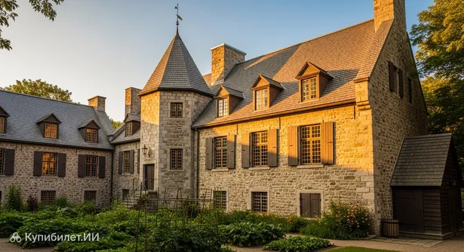 Весь комплекс включает в себя массивный каменный дом, амбар XVIII века и великолепные тематические сады. Это место уникально тем, что оно позволяет буквально прикоснуться к корням квебекской культуры и увидеть, как строилась жизнь на берегах реки Святого Лаврентия сотни лет назад.