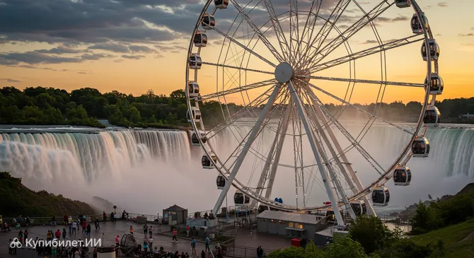 Ниагарское колесо обозрения (Niagara SkyWheel) — это одна из самых знаковых достопримечательностей города Ниагара-Фолс в Канаде. Являясь одним из самых больших колес обозрения в стране, оно поднимает посетителей на высоту 175 футов (около 53 метров) над землей. Отсюда открываются поистине захватывающие панорамные виды на знаменитое чудо природы — Ниагарский водопад.