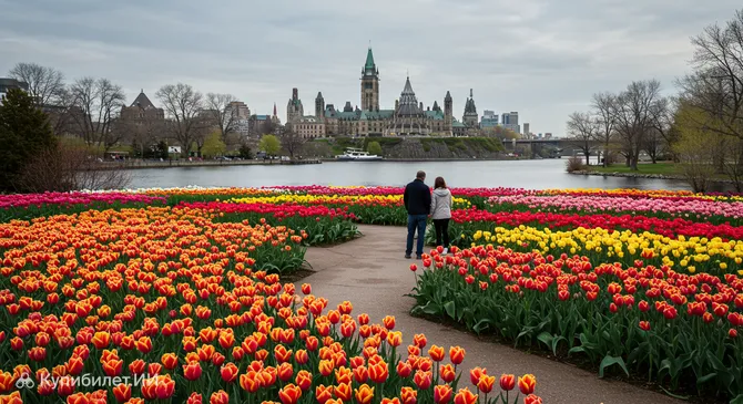 С приходом весны Парк Комиссаров преображается в настоящее цветочное море. Тысячи тюльпанов всевозможных сортов и оттенков, а также нежные крокусы и другие весенние цветы создают незабываемое зрелище. Это делает парк одним из самых фотогеничных и популярных мест в Оттаве для прогулок и отдыха в этот период.