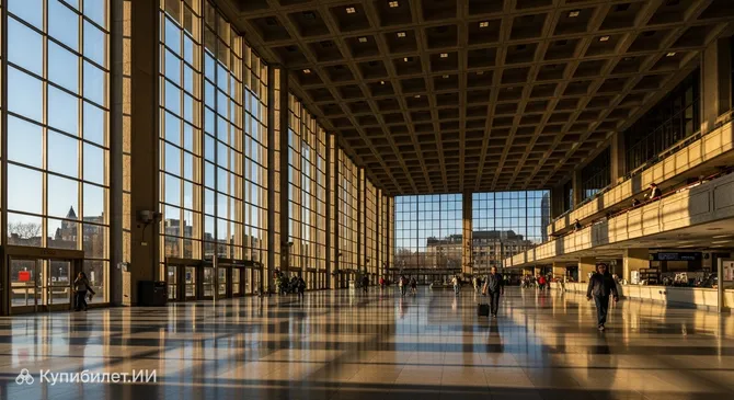 Пассажирам важно знать, что вокзал находится не в самом центре, но имеет отличное транспортное сообщение. Здание одноуровневое с удобными спиральными пандусами, ведущими к подземным переходам на платформы, что делает его доступным для всех категорий путешественников. Основной вход расположен со стороны Tremblay Road. Внутри легко ориентироваться благодаря открытой планировке: кассы и залы ожидания находятся в центральном атриуме, а выходы на посадку четко обозначены.