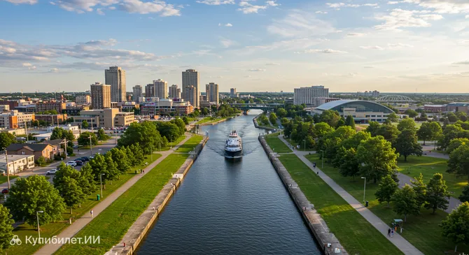 Сент-Катаринс известен прежде всего благодаря знаменитому каналу Уэлленд, важному водному пути, соединяющему озера Онтарио и Эри. Канал проходит прямо через город, и наблюдение за огромными грузовыми судами, преодолевающими систему шлюзов, является популярным развлечением. Город является частью Канады и служит важным транспортным и культурным узлом, предлагая своим гостям мягкий климат, обусловленный близостью Великих озер.