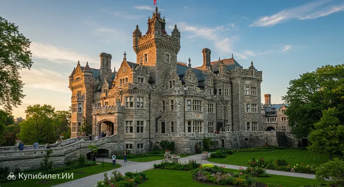 Каса Лома — это настоящий неоготический замок, который величественно возвышается на холме в самом сердце Торонто, одного из крупнейших городов Канады. Этот архитектурный шедевр, построенный в начале XX века, сегодня является одной из самых знаковых и посещаемых достопримечательностей города, привлекая туристов своей сказочной атмосферой и богатой историей. Название «Каса Лома» переводится с испанского как «Дом на холме», что идеально описывает его расположение, с которого открываются панорамные виды на город.