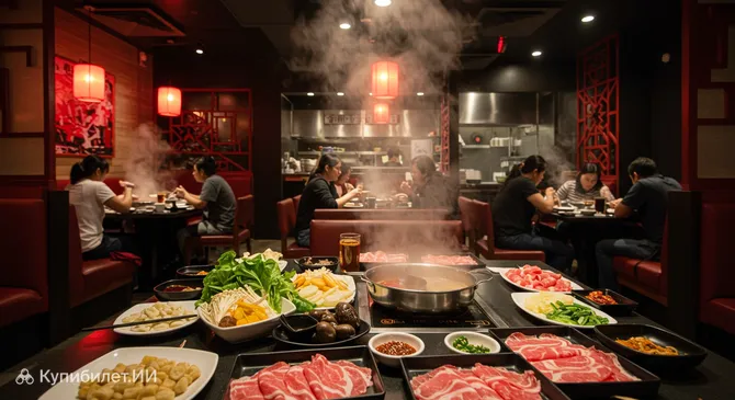 Суть хого заключается в том, что свежайшие ингредиенты – от нарезанного мяса и морепродуктов до разнообразных овощей и тофу – готовятся прямо за вашим столом, погружаясь в кипящий ароматный бульон. Хайдилaо славится своим аутентичным сычуаньским хот-потом, предлагая на выбор несколько видов бульонов, от насыщенных и острых до более мягких и деликатных, что позволяет каждому гостю найти вкус по душе.