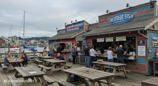 Обязательно попробуйте дары Тихого океана: свежевыловленный лосось, приготовленный на гриле или копченый, устрицы, которые подают как в сыром виде, так и запеченными, а также знаменитые фиш-энд-чипс – хрустящая рыба в кляре с картофелем фри, идеально подходящая для перекуса на набережной. Не упустите шанс отведать и другие местные деликатесы, такие как палтус или крабы. А на десерт, хоть это и специалитет соседнего города, часто можно найти классический канадский Нанаймо бар – трехслойное пирожное без выпечки.