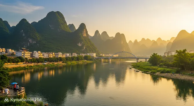 Для любителей природы обязательным пунктом программы станет озеро Чэнби. Этот огромный искусственный водоем, окруженный изумрудными холмами, часто называют «жемчужиной западного Гуанси». Здесь можно заказать лодочную прогулку, чтобы насладиться тишиной и полюбоваться причудливыми формами карстовых гор, отражающихся в зеркальной глади воды.