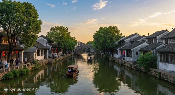 Самым колоритным и по-настоящему туристическим видом транспорта остаются традиционные черные лодки (вупэнчуань). Это не просто развлечение, а способ увидеть город с того ракурса, с которого его видели жители на протяжении столетий. Лодки курсируют по основным каналам исторического центра, и поездка на них позволяет избежать суеты наземных улиц и насладиться тишиной водных путей.