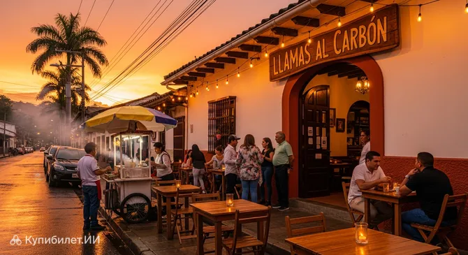 В самом сердце оживленного города Монтелибано находится Llamas al Carbón — место, где ароматы жареного мяса и уютная атмосфера сливаются воедино. Это популярный бар и ресторан, который стал излюбленным местом отдыха как для местных жителей, так и для путешественников, исследующих Колумбию.