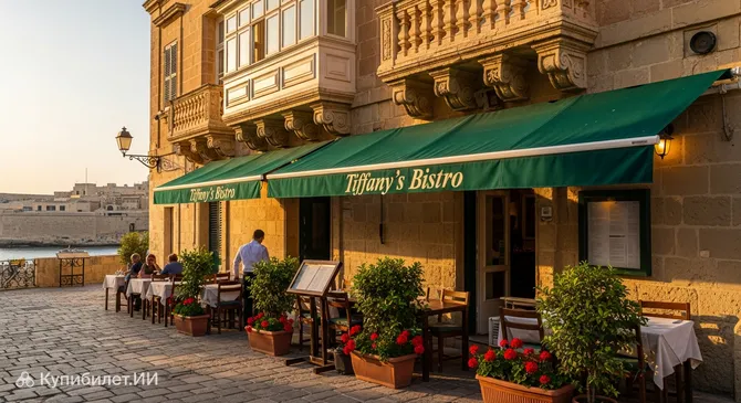«Бистро Tiffany's» — это очаровательное гастрономическое заведение, расположенное в живописном районе, которое привлекает гостей своей уютной атмосферой и стильным интерьером. Это место идеально подходит для тех, кто ищет сочетание комфорта и вкусной еды во время своего путешествия в страну Мальта. Бистро позиционирует себя как пространство для отдыха, где можно сделать паузу в насыщенном туристическом графике.