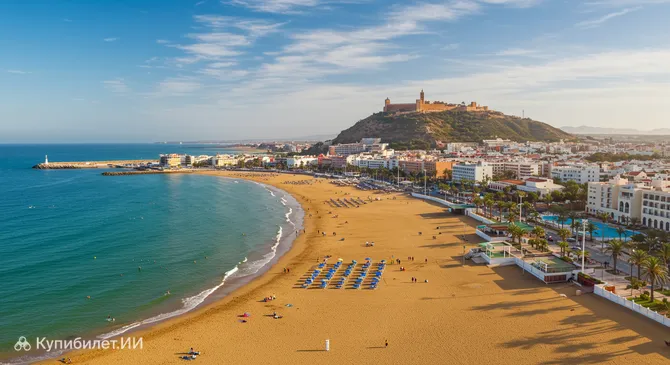 Одной из главных жемчужин Агадира, безусловно, являются его великолепные пляжи. Более шести километров золотистого песка идеально подходят для неспешных прогулок, занятий водными видами спорта, такими как серфинг, или просто для расслабленного пляжного отдыха. Мягкий климат, обеспечивающий более 300 солнечных дней в году, и чистые воды Атлантики привлекают сюда туристов со всего мира в любое время года.