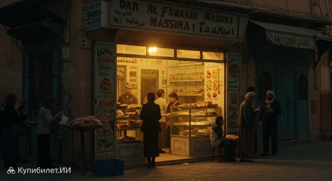 Для тех, кто предпочитает мясные блюда, отличным выбором станет Гриль Хаус, где готовят традиционные марокканские шашлыки (брошеты) и гриль из баранины. Не забудьте также попробовать хариру — густой и питательный томатный суп с бобовыми, который особенно популярен в вечернее время. Если же вам захочется чего-то легкого и сладкого, загляните в Дар Аль-Фаваких Массира 1 за свежими фруктами и местными десертами.