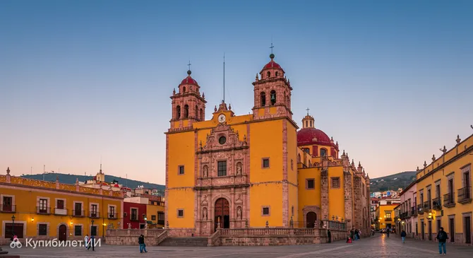 Базилика Богоматери Гуанахуато – это не просто главный католический храм города Гуанахуато, это его пламенное сердце и одна из самых узнаваемых достопримечательностей Мексики. Расположенная в историческом центре, базилика сразу привлекает внимание своим ярким обликом: фасад насыщенного желтого цвета с контрастными красными деталями и величественный купол делают ее доминантой городского пейзажа. Это знаковое сооружение является символом католической веры и богатого исторического наследия региона.