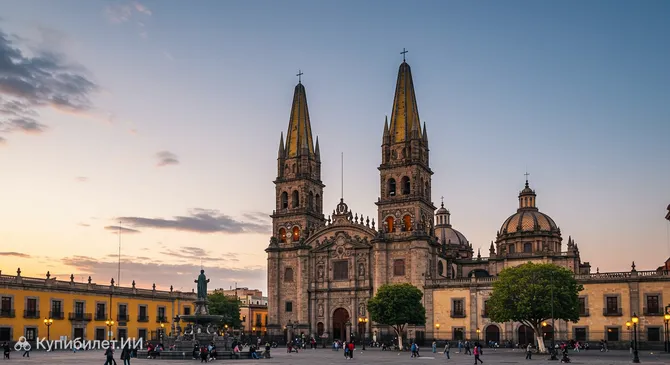 Кафедральный собор Успения Пресвятой Богородицы — главный католический храм и один из самых узнаваемых символов города Гвадалахара, расположенный в его историческом центре. Это не просто религиозное сооружение, а сердце города, вокруг которого кипит жизнь. Строительство собора началось в середине XVI века, и за свою долгую историю он неоднократно перестраивался, в том числе из-за землетрясений, разрушавших его башни и купол. Именно эти реконструкции подарили храму его неповторимый облик.