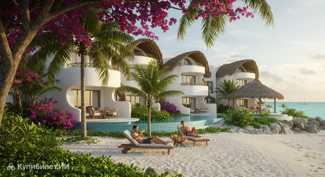 Архитектура курорта гармонично сочетает в себе современные мексиканские мотивы и средиземноморский стиль. В отделке зданий использован благородный камень Тикуль и изысканный мрамор, которые подчеркивают высокий статус этого места. Мексика славится своими пляжами, но именно здесь, в окружении пышных тропических садов и бирюзовых вод, можно ощутить истинное спокойствие, вдали от шумных туристических зон Канкуна.