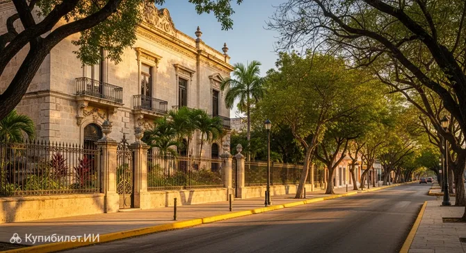 Представьте себе изящный европейский бульвар, перенесенный под жаркое солнце Юкатана — это и есть Пасео-де-Монтехо. Расположенный в самом сердце города Мерида, этот величественный проспект является главной исторической артерией столицы штата. Названный в честь основателя города, бульвар протянулся почти на два километра, демонстрируя роскошные особняки в стиле французского неоренессанса и бель-эпок, построенные в период «хенекенового бума».