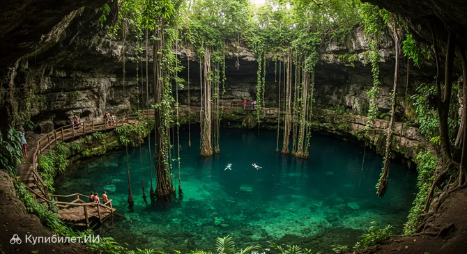 Сеноте Хардин-дель-Эден (Cenote Jardín del Eden) – это настоящее природное сокровище, расположенное неподалеку от оживленного города Плайя-дель-Кармен, в солнечной Мексике. Этот сеноте представляет собой карстовый провал, или природный колодец, образовавшийся в результате обрушения свода известняковой пещеры, обнажив кристально чистые подземные пресные воды. Благодаря исключительной прозрачности воды, Хардин-дель-Эден стал невероятно популярным местом для освежающего купания, снорклинга и погружений с аквалангом.