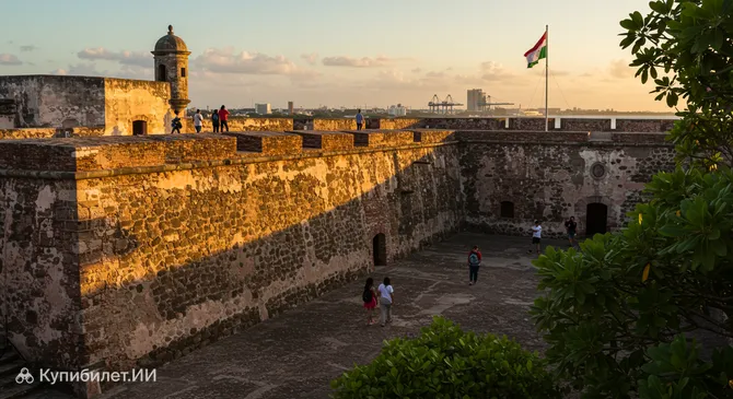 Первоначально сооружение было возведено как ключевой оборонительный бастион, призванный защищать город и его жителей от дерзких нападений пиратов. Сегодня суровые стены крепости сменили свою военную роль на просветительскую: внутри расположен небольшой, но крайне информативный музей, рассказывающий об удивительной судьбе этого портового региона в Мексике.