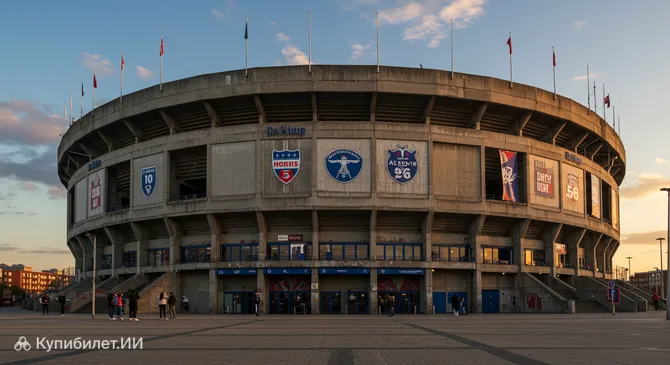 Де Кёйп (De Kuip), что в переводе означает «Бадья» — это легендарный футбольный стадион, расположенный в городе Роттердам, Нидерланды. Его официальное название — «Стадион Фейеноорд» (Stadion Feyenoord), и он служит домашней ареной для одноименного прославленного футбольного клуба. Расположенный в районе Фейеноорд, этот стадион является не просто спортивным объектом, а настоящим символом города и одной из самых знаковых арен в стране.