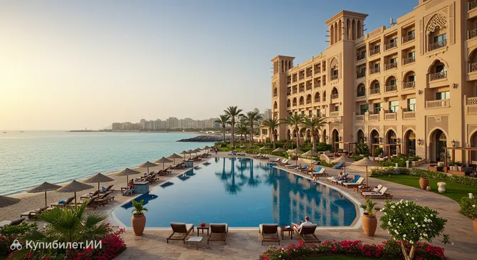 Палас Бич Резорт Фуджейра – это современный пятизвездочный курортный отель, расположенный на живописном побережье эмирата Фуджейра в ОАЭ. Его уникальное преимущество – прямой выход к Индийскому океану, что делает его идеальным выбором для ценителей пляжного отдыха и безмятежного времяпрепровождения у воды.