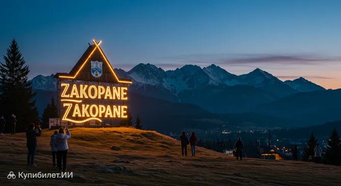 Эта инсталляция не просто указатель, а настоящий символ Закопане, ставшая излюбленным местом для создания памятных фотографий. С площадки, где расположена надпись, открываются захватывающие виды на раскинувшийся внизу город. Особенно впечатляющи эти пейзажи на рассвете, когда первые солнечные лучи озаряют Закопане и горные вершины, создавая поистине волшебную атмосферу.