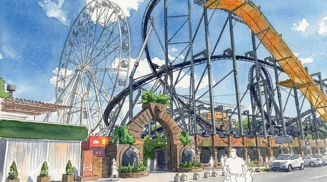 Главной гордостью парка является 70-метровое колесо обозрения, которое входит в число высочайших на Северном Кавказе. С его открытых и закрытых кабин открывается захватывающая дух панорама города, песчаных пляжей и бескрайнего моря. Территория парка разделена на зоны, предлагая гостям более 40 различных аттракционов: от спокойных каруселей для самых маленьких до экстремальных комплексов, способных удивить даже опытных искателей адреналина.