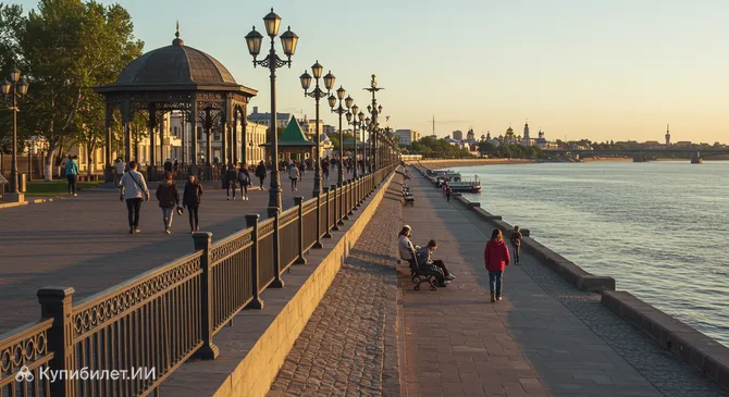Набережная представляет собой прекрасно благоустроенную пешеходную зону. Здесь вас ждут широкие прогулочные аллеи, уютные скверы с лавочками для отдыха, где можно насладиться речной прохладой, и живописные уголки. Вдоль набережной сохранились исторические здания и архитектурные памятники конца XIX – начала XX веков, придающие этому месту особый шарм и очарование старого города.