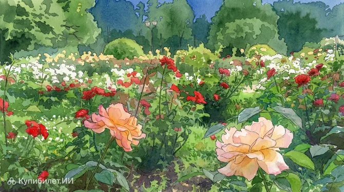 Главная особенность этого места — концепция сада непрерывного цветения. С конца июня по октябрь посетителей радует пышное цветение роз, включая знаменитые сорта «Вивальди» и «Королева Елизавета». Однако розарий интересен в любое время года: весной здесь распускаются тюльпаны и сирень, а осенью эстафету принимают гортензии, флоксы и хризантемы, создавая постоянно меняющийся живой ковер.