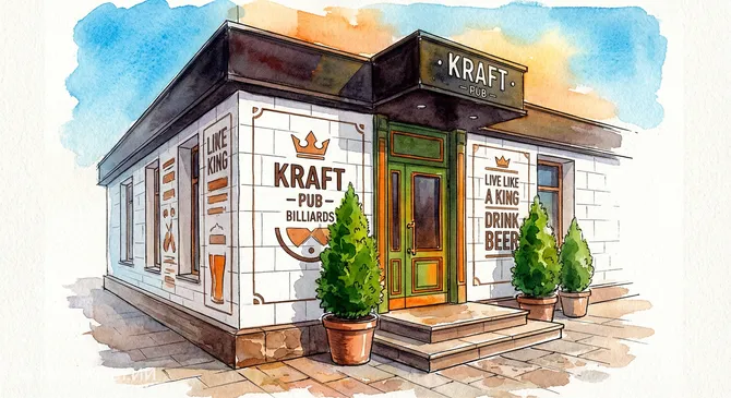 Одной из главных особенностей заведения является возможность самостоятельного налива пива прямо из крана, что добавляет визиту интерактивности. Имея впечатляющий рейтинг 4.7, паб славится не только своей барной картой, но и отличной мясной кухней, а также аутентичными национальными закусками, делающими его обязательным пунктом в маршруте любого туриста.