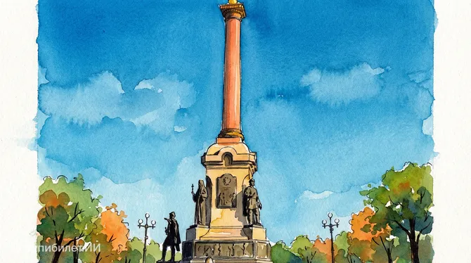 Там, где встречаются воды Волги и Которосли, возвышается величественный Памятник 1000-летию Ярославля. Это знаковое место для каждого, кто посещает Ярославль, ведь именно здесь началась история одного из древнейших городов, которыми гордится Россия. Монумент представляет собой 20-метровую гранитную колонну, увенчанную золоченым двуглавым орлом, и окруженную бронзовыми фигурами ключевых исторических персонажей.